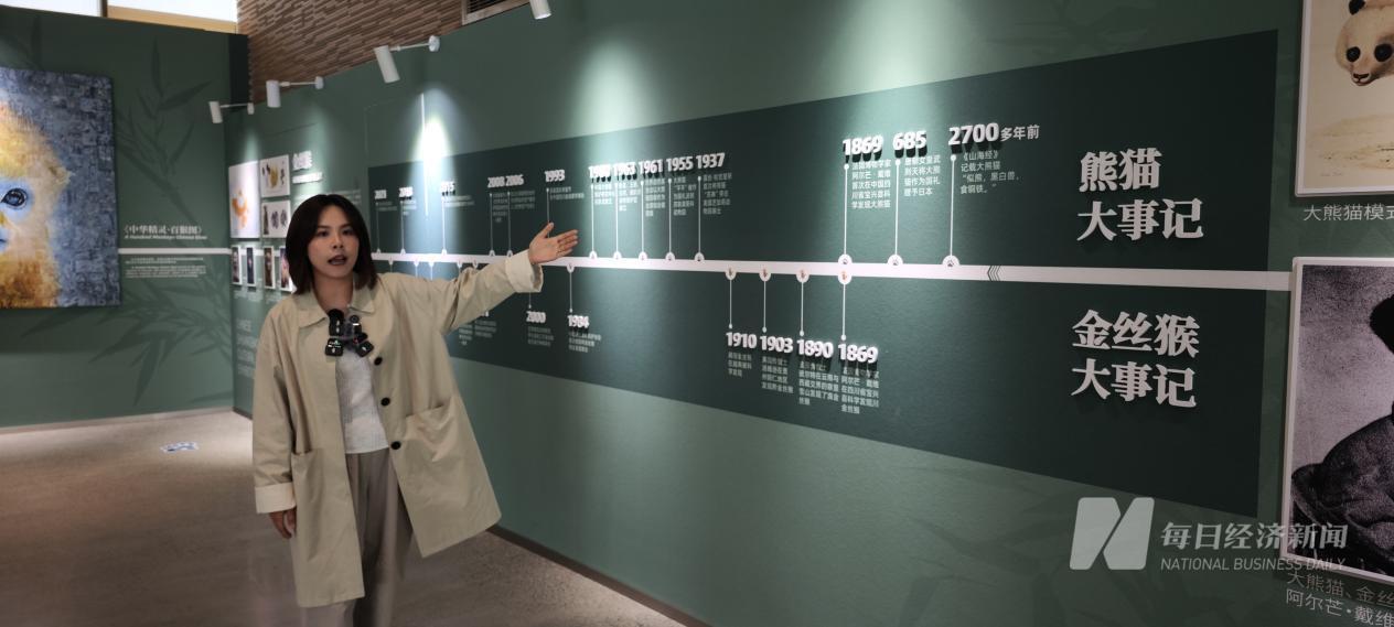 “1869年,法国博物学家阿尔芒·戴维在四川雅安宝兴相继发现了大熊猫和川金丝猴,被认为是这两个物种的人类首次科学发现。这两大物种同源四川,又互为伴生动物,一个是黑白,一个是彩色,一个是憨态可掬,一个是灵动活泼。”活动现场,中国双宝文化交流中心展览综合部负责人李玉琦介绍道。